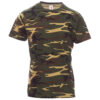 T-shirt da uomo girocollo manica corta, colletto in costina misto spandex da 1.5 cm con cucitura ribattuta sul davanti, nastro di rinforzo da spalla a spalla in colore a contrasto visibile nel colletto, cuciture stretch, struttura tubolare (colore mimetico con cucitura laterale).
